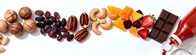 - Food & Snacks: Nuts, dried fruits, candies, cookies, sauces, frozen foods